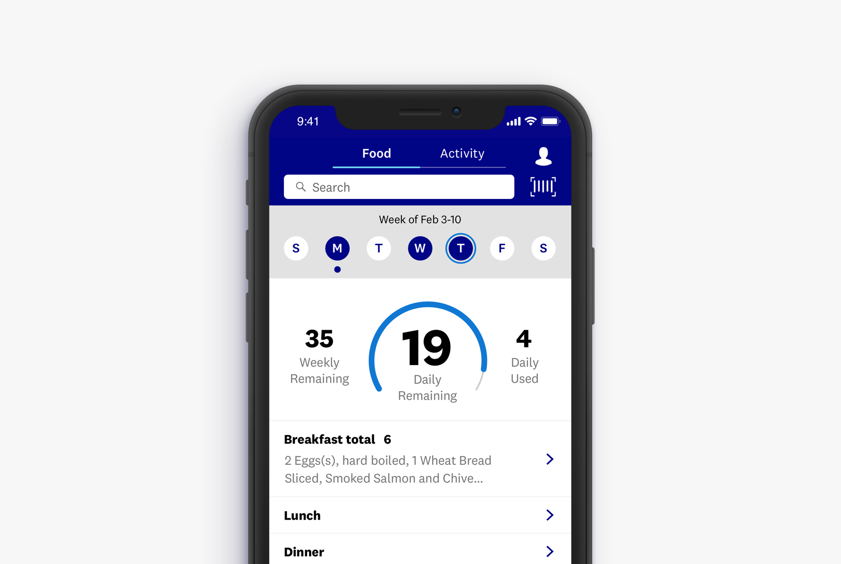 We moved members weekly information to a secondary screen in order to allow members to focus on their daily progress and improved discoverability of the data visualization feature by providing clearer signifiers.