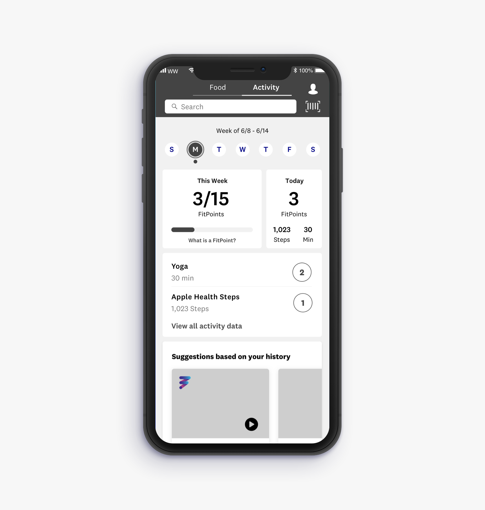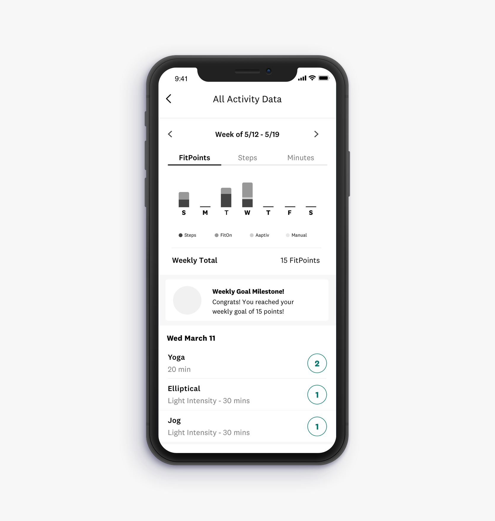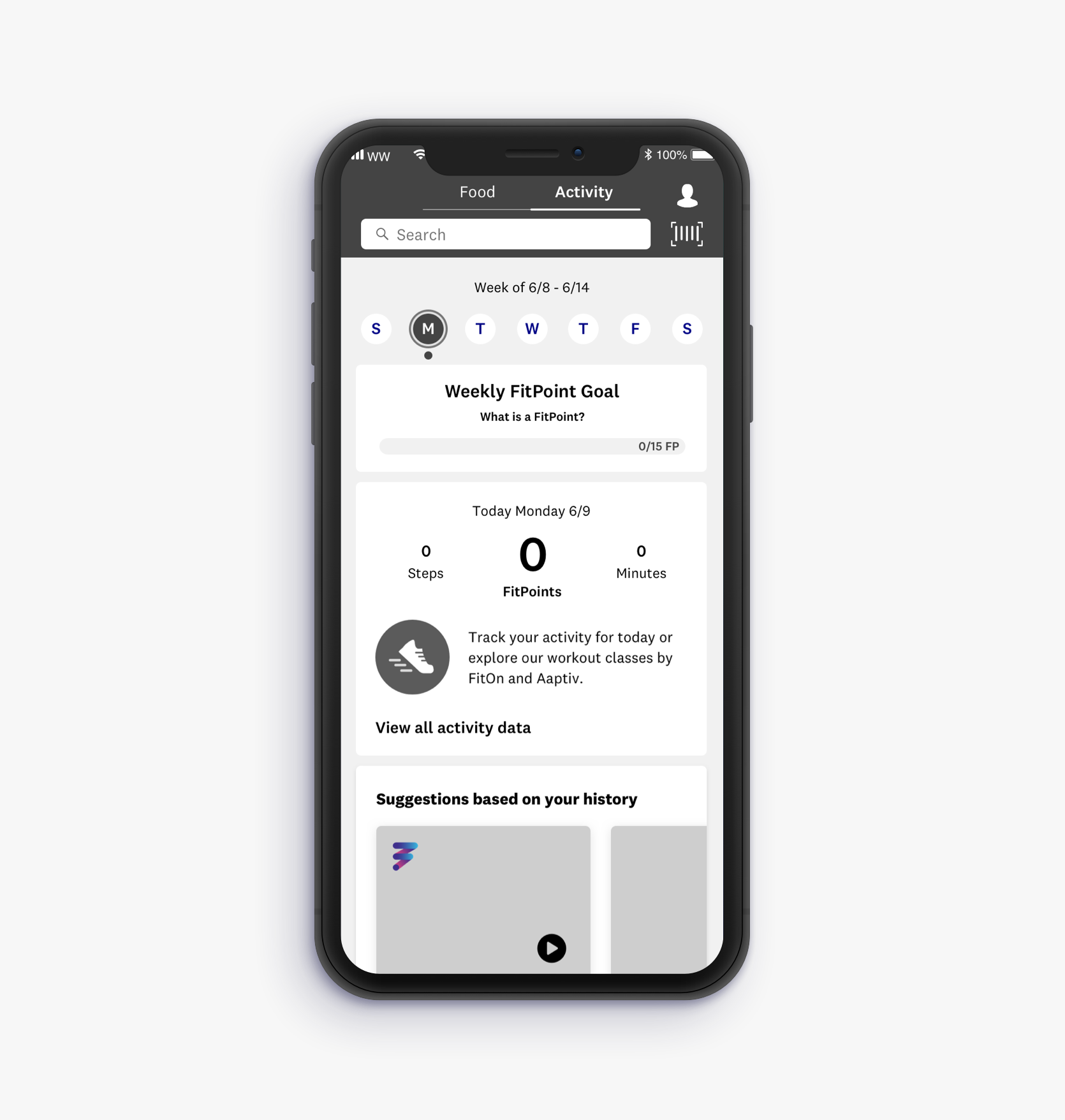 In conjunction with iterating on the FitOn experience, we simplified the main activity dashboard in order to provide members a more robust view into viewing their FitPoint goals and progress.