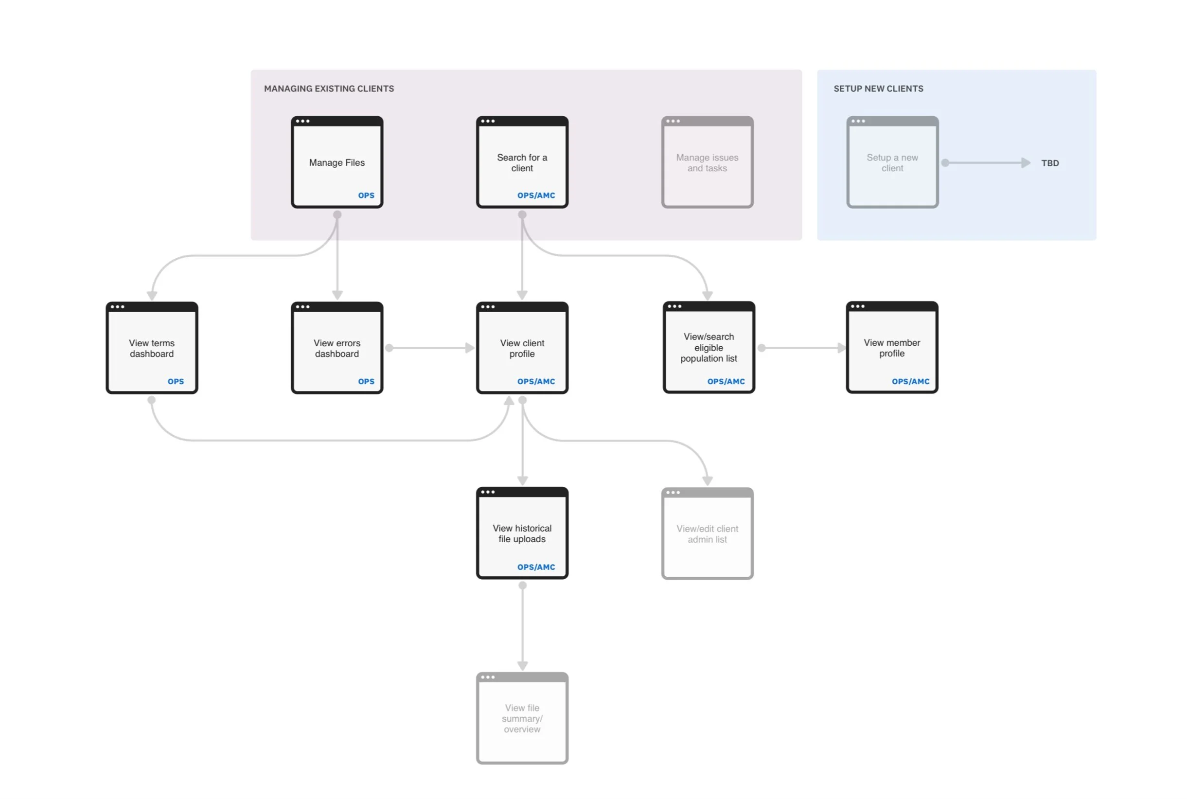 I mapped out the current user flow by working with the operations team to go through their journey. It also allowed me to understand the underlying tech constraints that the engineers were trying to fix. It was important that we build the correct foundation this time around in order not to build up tech debt again and to ensure scalable processes and systems for the future.