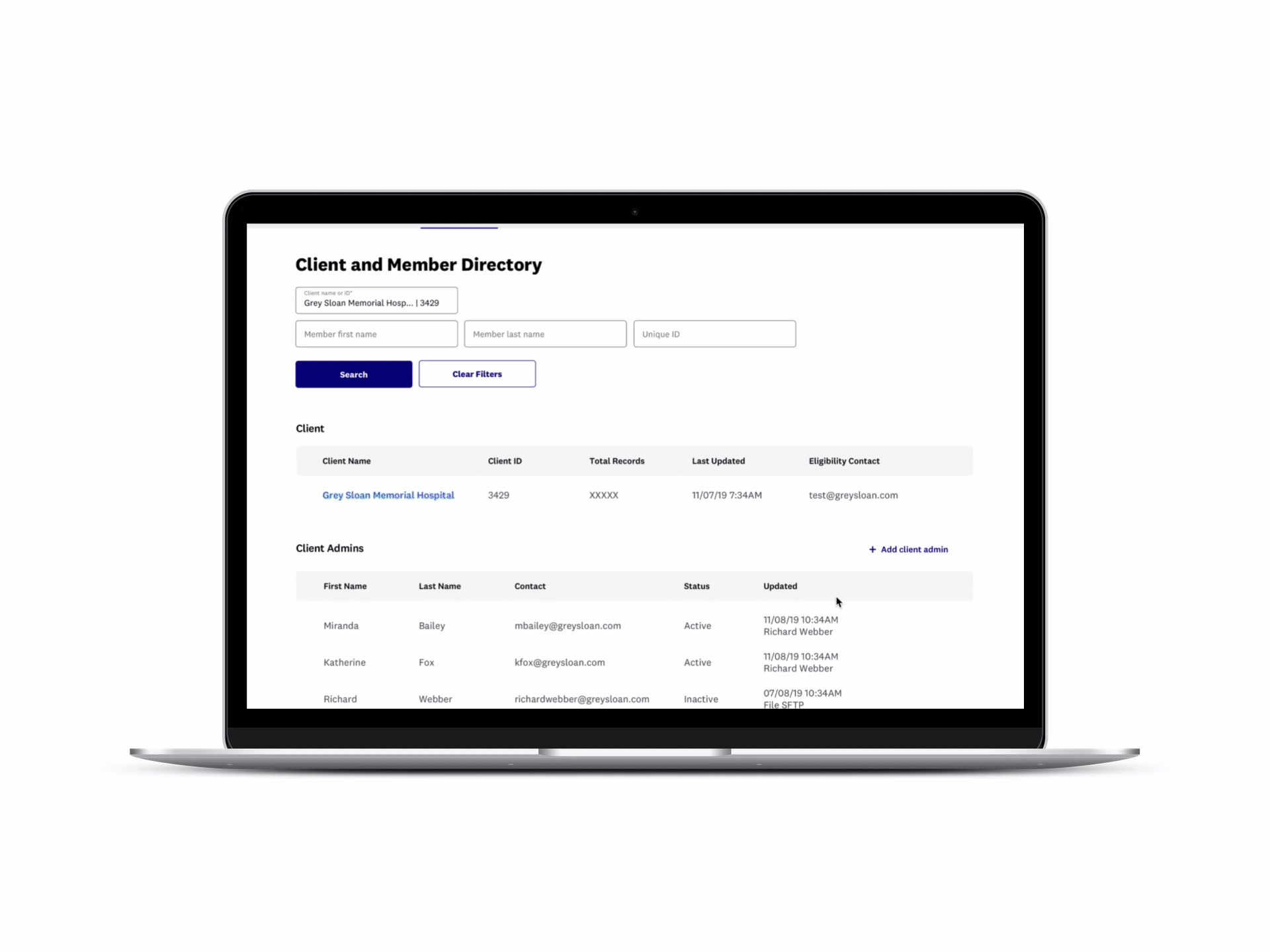 This feature is a directory of all current and historical Health Solution clients, something that does not currently exist. This also includes any eligible lives within the clients population. This search functionality can tremendously improve workflows by providing a quick and easy way to find a specific client or eligible life.